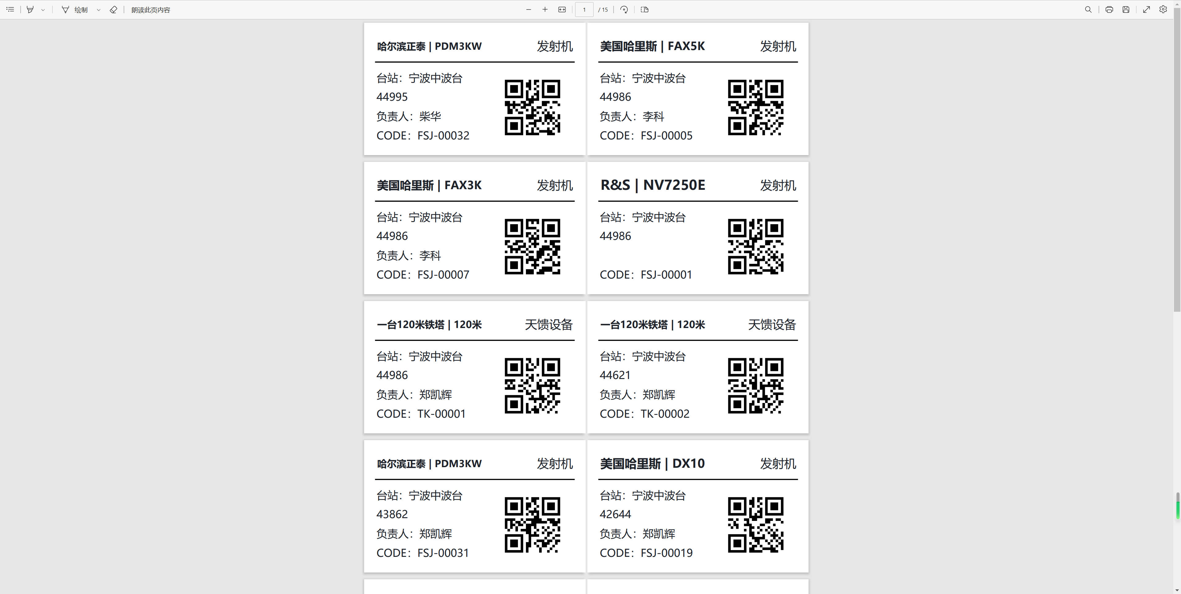 一物一码:为每台设备生成唯一二维码,扫码即可查看设备详情、在用状态、维保记录等。